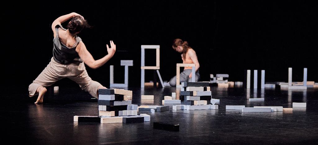 Vor einer Bühne mit Hunderten von Holzziegeln bewegen sie sich in einer Endlosschleife aus Zerstörung und Aufbau. In der sich verändernden Landschaft tauchen Bilder auf – Fragmente, die Ruinen, Kämpfe und Nachwirkungen widerspiegeln – und Szenen heraufbeschwören, die unweigerlich an Kriege und Konflikte erinnern, was das Werk mit den Spannungen unserer Gegenwart in Einklang bringt.