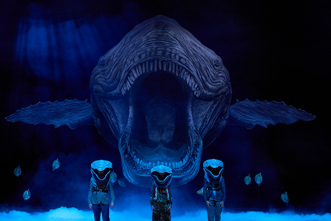 Wenn unter dem Pflaster der Strand liegt, wie es bei den „68ern“ gerne hieß, ist es bis zum Meer nicht mehr weit. Der umgekehrten Richtung, aus dem Meer auf das Pflaster, folgt Gladis, die Protagonistin dieser Oper. Gladis ist ein Wal. Und sie will kaputt machen, was sie kaputt macht. Kreuzfahrtschiffe, Superyachten, solche Sachen. Nicht nur im Meer, sondern auch an Land. Und so geht sie auf ein Angebot ein und verkauft eine ihrer Flossen für 24 Stunden menschliche Gestalt. Der rote Wal ist ein Märchen, das sich einem Stuttgarter Stoff nähert, der wie ein Mythos aufgeladen ist. Ein „Deutsches Herbstmärchen“ über den Mythos RAF, über die Frage, was Widerstand darf und auch darüber, was war und was wahr ist.
