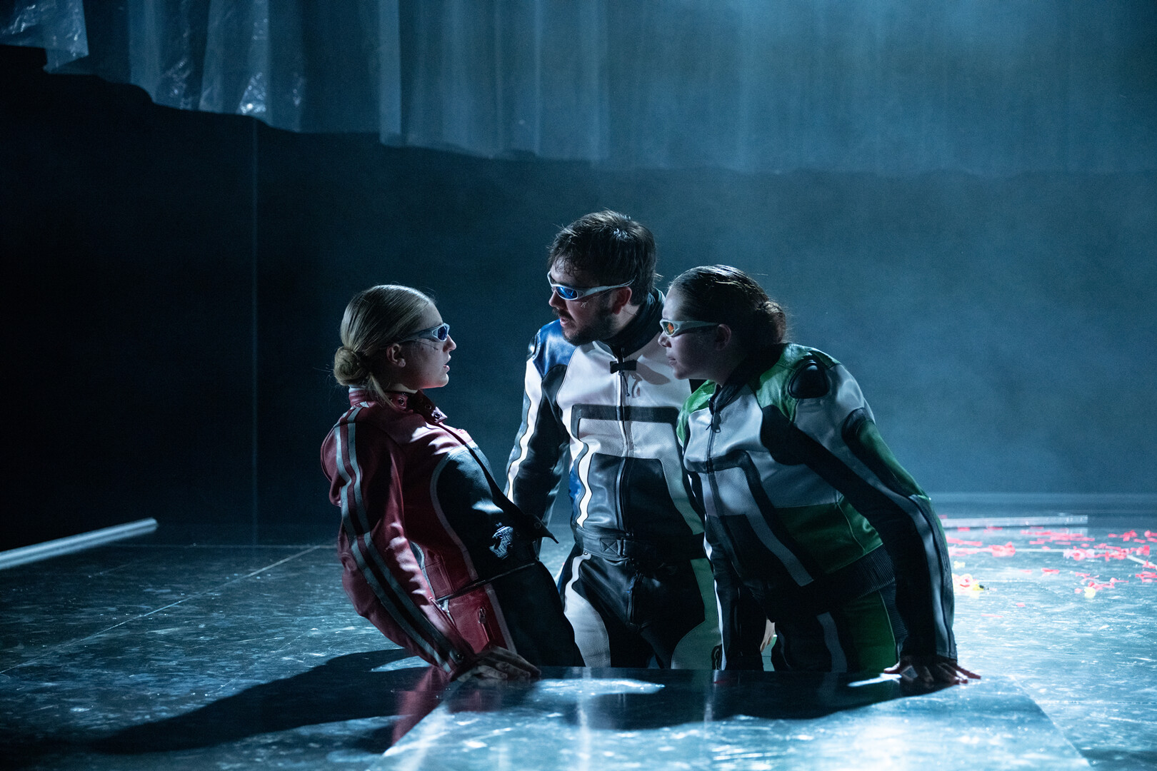 Tetrissteine bilden immer neue Ränder, wie sie sich auch ineinanderschieben. Dabei bevorzugen sie die Mitte der Fläche, da die unterste Reihe bekanntlich schnell verschwindet. Vom Rand des Geschehens aus werden sie bei ihrem seltsamen Reigen von Soziolog*innen wissenschaftlich betrachtet – dabei sind diese eigentlich auf der Jagd nach dem letzten Einhorn, das als flüchtiges Phantasma selbst ein Leben am Rand führt. Fernab jeden Randes finden sich scheinbar die Astronaut*innen ohne Kontakt zur Erde, während aus den Ritzen zwischen irdischen Rändern die Fühler der Kakerlaken angstvoll hervorlugen. Jenseits des Bühnenrandes lauert ein unbeteiligter Beobachter, der später noch als zaghafter Terrorist an einer Geiselnahme scheitern wird, bevor die Zukunft ganz zum Schluss – am Rande des Augenblicks – alle verschlingt.
