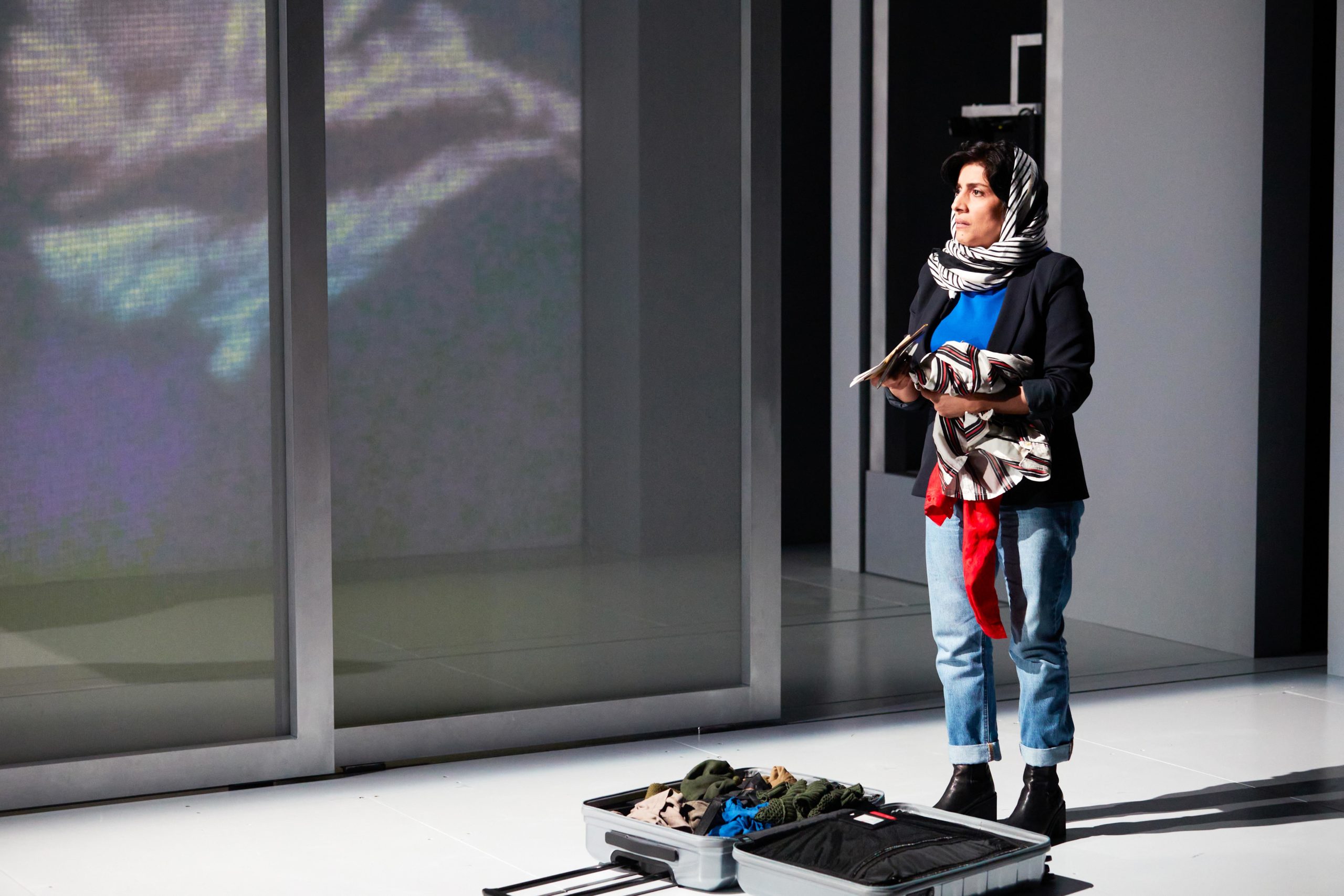 En transit est le fruit d’une rencontre : celle d’une fiction, le roman Transit d’Anna Seghers de 1942, et d’une réalité, vécue par Amir Reza Koohestani. Dans son œuvre, l’écrivaine décrit la condition de celles et ceux qui, acculé·e·s à Marseille, tentent de fuir le régime nazi. En 2018, le metteur en scène est retenu plusieurs heures à l’aéroport de Munich, puis renvoyé à Téhéran pour avoir dépassé de quelques jours son droit de séjour dans l’espace Schengen.