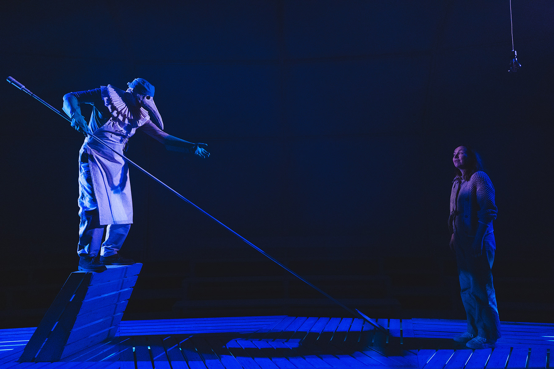 Plongez le cœur en premier dans le texte de Mohamed Rouabhi et sondez les entrailles de la baleine… La matrice de toutes les métamorphoses jouées et racontées par un banc d’artistes fluctuant entre comédie et acrobatie. Après La tristesse de l’éléphant et Le poisson Belge, Thomas Ress met en scène cette fable onirique et bouleversante qui convoque la différence, la tolérance, la liberté et l’amour par-delà la mer.