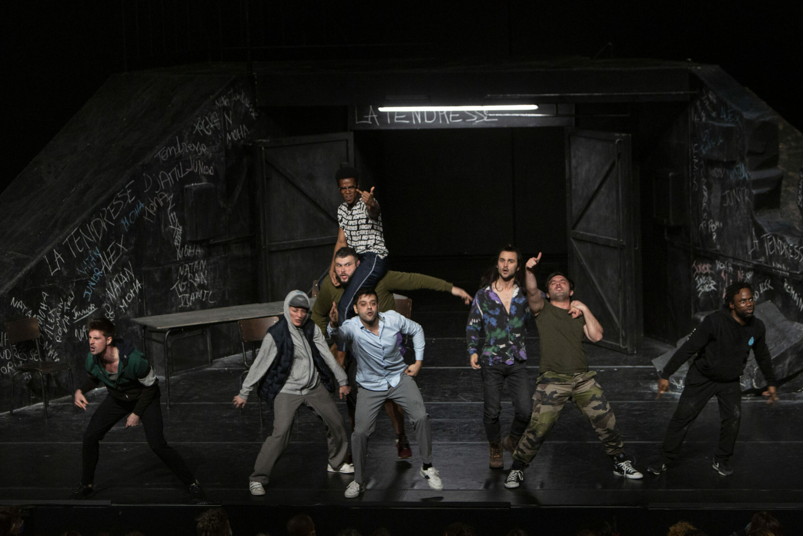 La metteuse en scène Julie Berès s’est entourée pour La Tendresse d’une myriade d’auteurs et d’autrices pour enquêter et recueillir les paroles de jeunes hommes d’origines extrêmement variées afin de questionner les stéréotypes liés à la virilité et aux injonctions sociales qui façonnent l’identité masculine : la famille, la sexualité, le travail, la justice, l’héritage culturel… Sur scène, huit comédiens-danseurs se racontent au travers de témoignages intimes et de performances chorégraphiques. Ils révèlent un théâtre performatif, en adresse directe avec le public et qui invite au plateau la culture hip-hop et ses battles, pour en révéler la charge poétique et politique. Cette pièce propose une réflexion sensible sur la masculinité contemporaine, ouvrant un espace de parole et de libération. Entre fragilité et révolte, humour et émotion, le spectacle interroge ce que signifie « être un homme » aujourd’hui et invite à réinventer d’autres modèles plus libres et apaisés.