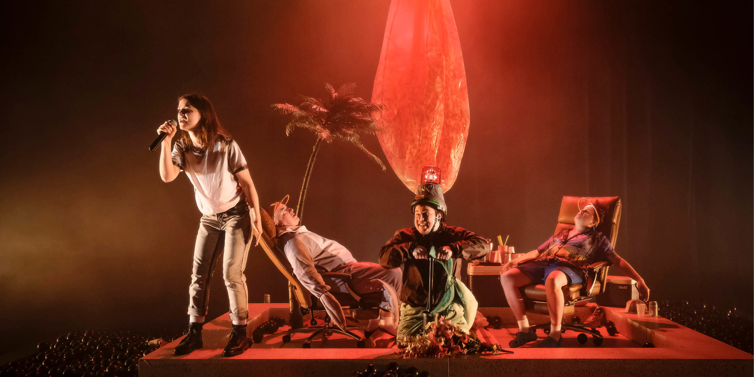 L’état du monde pèse lourd sur Jeanne et Olivier. Elle vandalise des pubs. Lui rêve que sa génération brûle comme une guimauve. Voilà qu’une élection étudiante s’organise dans le cadre de la (honteusement sous-financée) « Semaine du futur ». Se cristallisent des sujets d’avenir, des occasions de résistance et ce goût commun de changer les choses. Tous·tes deux s’affrontent dans une campagne électorale menée sur fond de discours enflammés, d’expéditions ninjas, de collusion et de satanées licornes. Aussi exubérante que caustique, la pièce invite le public, sans trop se prendre au sérieux, à réfléchir au poids qu’il porte et à celui qu’il possède face au monde. Le Poids des fourmis jongle avec des questions de résistance citoyenne et d’abus de pouvoir. Est-il possible de transformer un système en suivant les règles ou la solution passe-t-elle par la désobéissance ? L’optimisme est-il une forme de déni ? Quel est le coût de la lucidité : inquiétude ou espoir ?