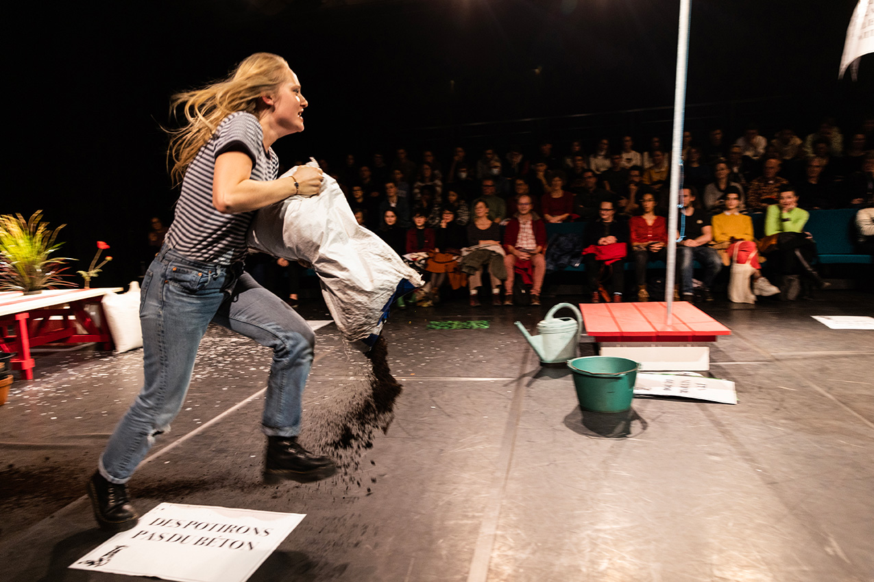Déjà avec Histoire(s) de France, au TAPS en 2024, puis cette saison avec Arthur et Ibrahim et Nos jardins, le théâtre d’Amine Adjina se place définitivement du côté de la jeunesse. Et l’énergie des acteurs pastichant avec humour des personnages historiques vêtus de sacs à patates, et l’intimité de la mise en scène, comme l’ardeur du débat ou la ferveur de l’engagement, tout nous plonge dans un bain de jouvence salutaire et joyeux !