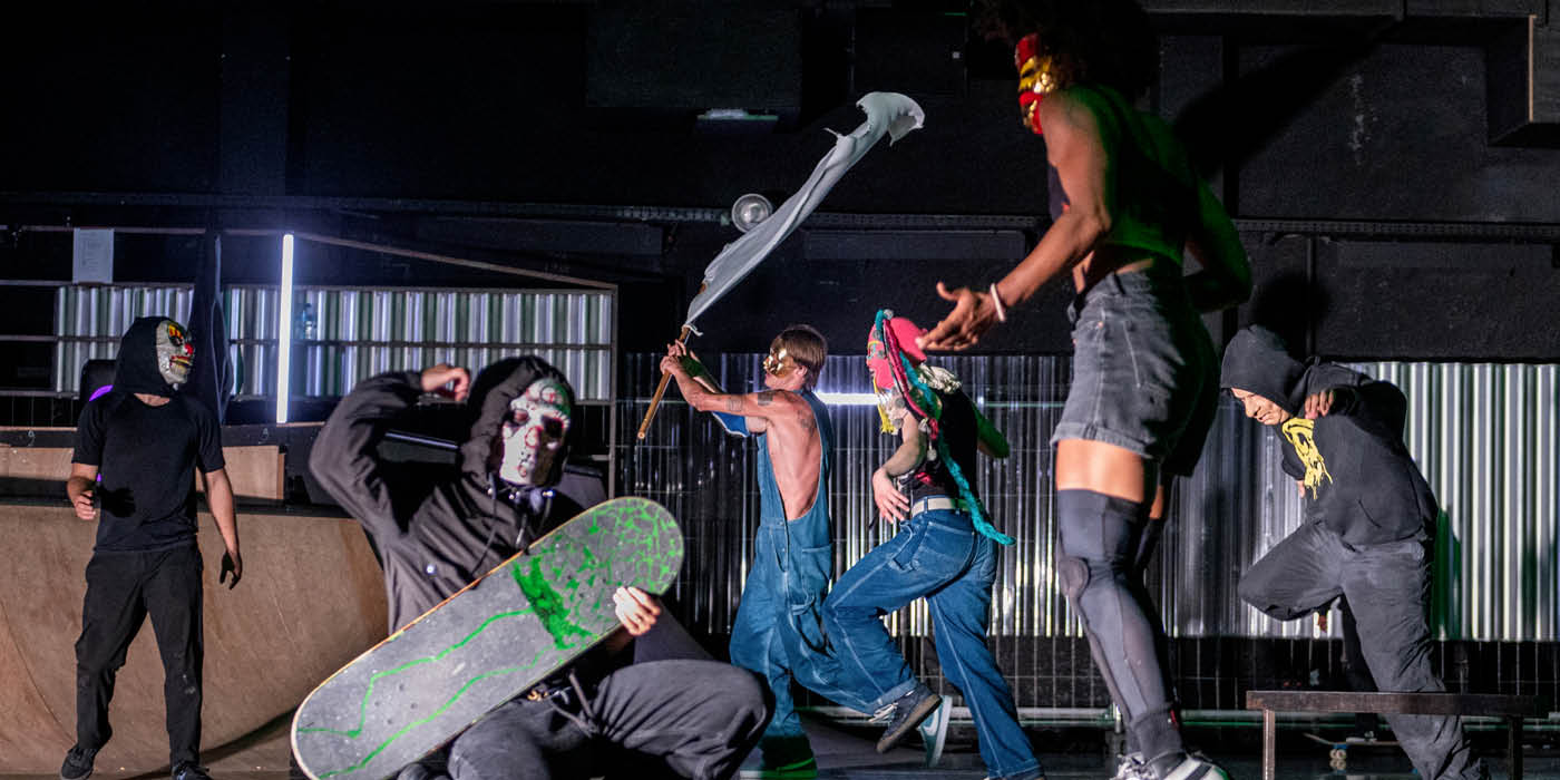 La légende veut que le skateboard soit né un jour sans vague… Les surfeur·euses seraient alors allé·es glisser sur l’asphalte de la ville ! Avec un groupe de skateur·euses et de danseur·euses, Mette Ingvartsen explore la vitesse et l’énergie du mouvement sur roues – un souvenir physique de sa propre jeunesse. Plus qu’un spectacle de prouesses virtuoses, Skatepark montre l’émergence d’une communauté dans un espace partagé où les générations, les cultures et les milieux sociaux se mêlent. Tous·tes tombent, se relèvent, repoussent les limites du possible, tout en chantant, dansant et chahutant joyeusement. Les chorégraphies, entre équilibre, sauts, interactions et affrontements turbulents, happent l’attention du public. Les performeur·euses partagent leur art de l’extrême et les résultats de leurs pratiques intensives. Leur énergie est communicative. Leurs mouvements, rythmés, fluides ou vertigineux, sont composés d’une variété d’acrobaties, de courbes et de déplacements collectifs.